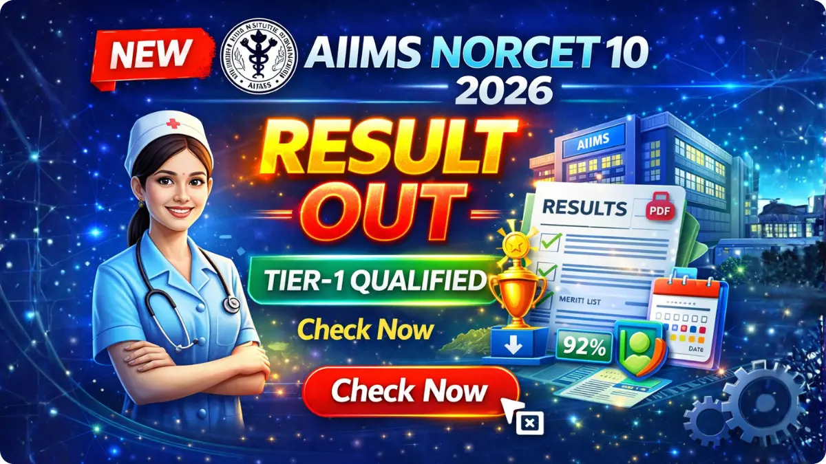 AIIMS NORCET 10 Result 2026: The All India Institute of Medical Sciences (AIIMS), New Delhi has officially released the NORCET-10 Tier-1 Result 2026. Candidates who appeared in the Nursing Officer Recruitment Common Eligibility Test (NORCET-10) can now check their roll number-wise result PDF.