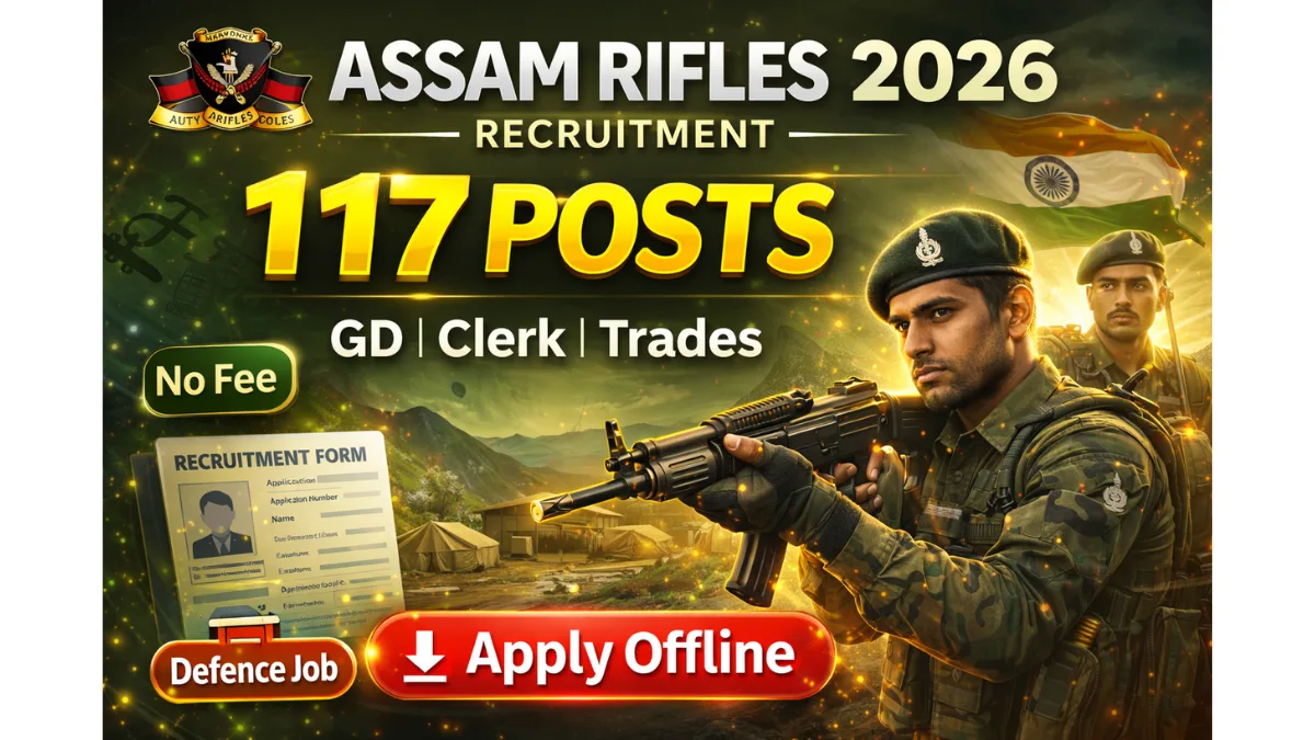 Assam Rifles Recruitment 2026: Office of the Director General Assam Rifles, Shillong has released an official notice for Compassionate Ground Appointment Scheme Recruitment 2026. A total of 117 vacancies have been announced for various posts including Havildar Clerk, Rifleman Mason, and other technical trades.