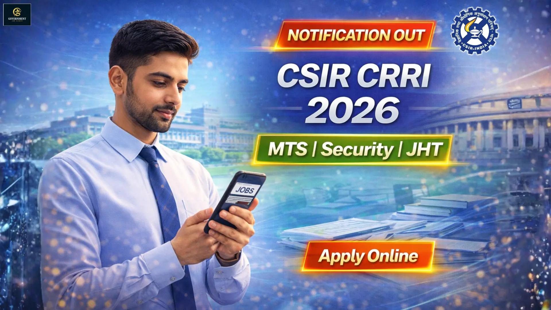 CSIRβCentral Road Research Institute (CSIR-CRRI), New Delhi has officially released the Recruitment Notification 2026 for various Non-Technical posts including Junior Hindi Translator (JHT), Security Assistant / Watch & Ward Assistant and Multi-Tasking Staff (MTS). Online applications are invited from eligible Indian nationals.