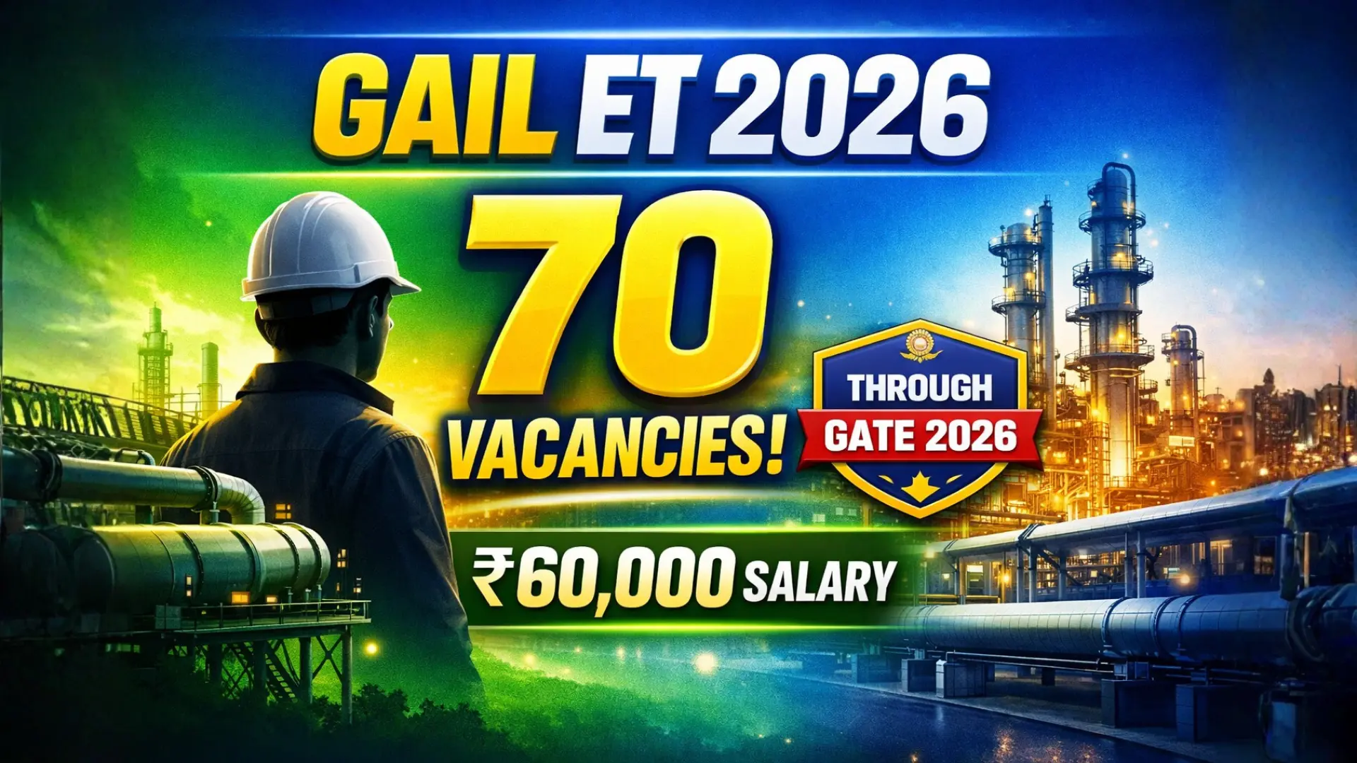 GAIL (India) Limited, a Maharatna Public Sector Undertaking and Indiaβs leading natural gas company, has released the official notification for Executive Trainee Recruitment 2026. The recruitment will be conducted through GATE 2026 scores. A total of 70 Executive Trainee (ET) vacancies are available across multiple engineering disciplines including Chemical, Instrumentation, Electrical, and Mechanical.