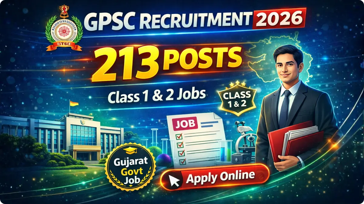 GPSC Recruitment 2026: Gujarat Public Service Commission (GPSC) has released a major recruitment notification for Class-1 & Class-2 posts including Gujarat Administrative Service, Civil Services and Municipal Chief Officer. A total of 213 vacancies have been announced across multiple departments.