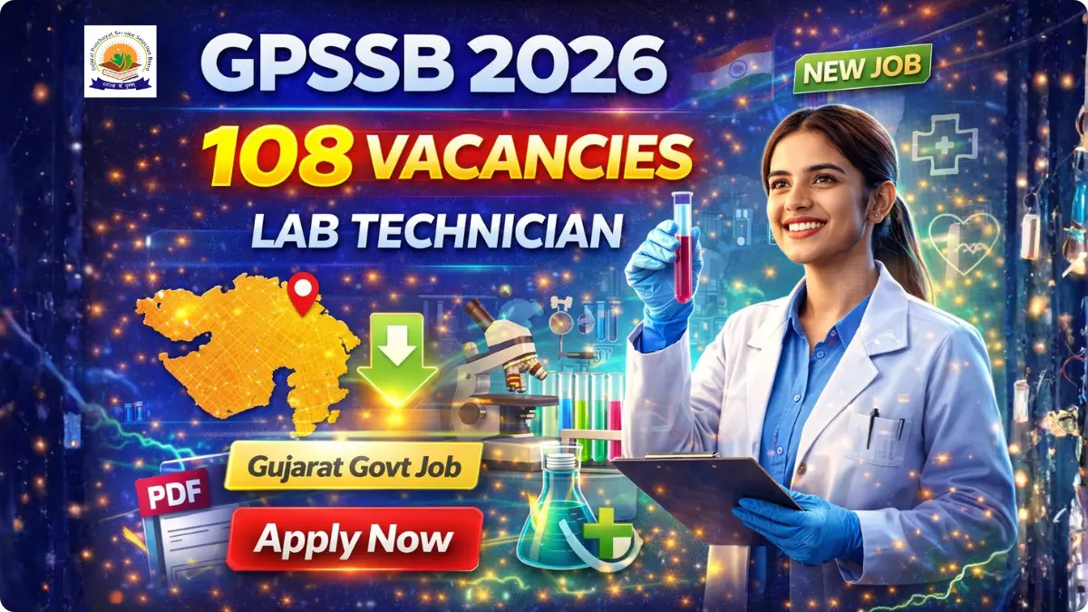 GPSSB Laboratory Technician Recruitment 2026: Gujarat Panchayat Service Selection Board (GPSSB) has released the official notification for Laboratory Technician (Class-III) Recruitment 2026. A total of 108 vacancies have been announced for various districts of Gujarat.