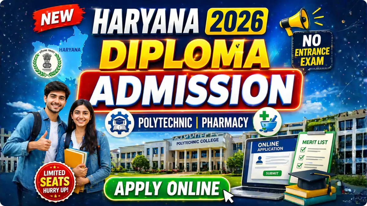 Haryana Diploma Admission 2026: Haryana State Technical Education Society (HSTES) has released the official notification for Haryana Diploma Admission 2026-27 for courses including Diploma Engineering, Diploma Pharmacy, and Lateral Entry.