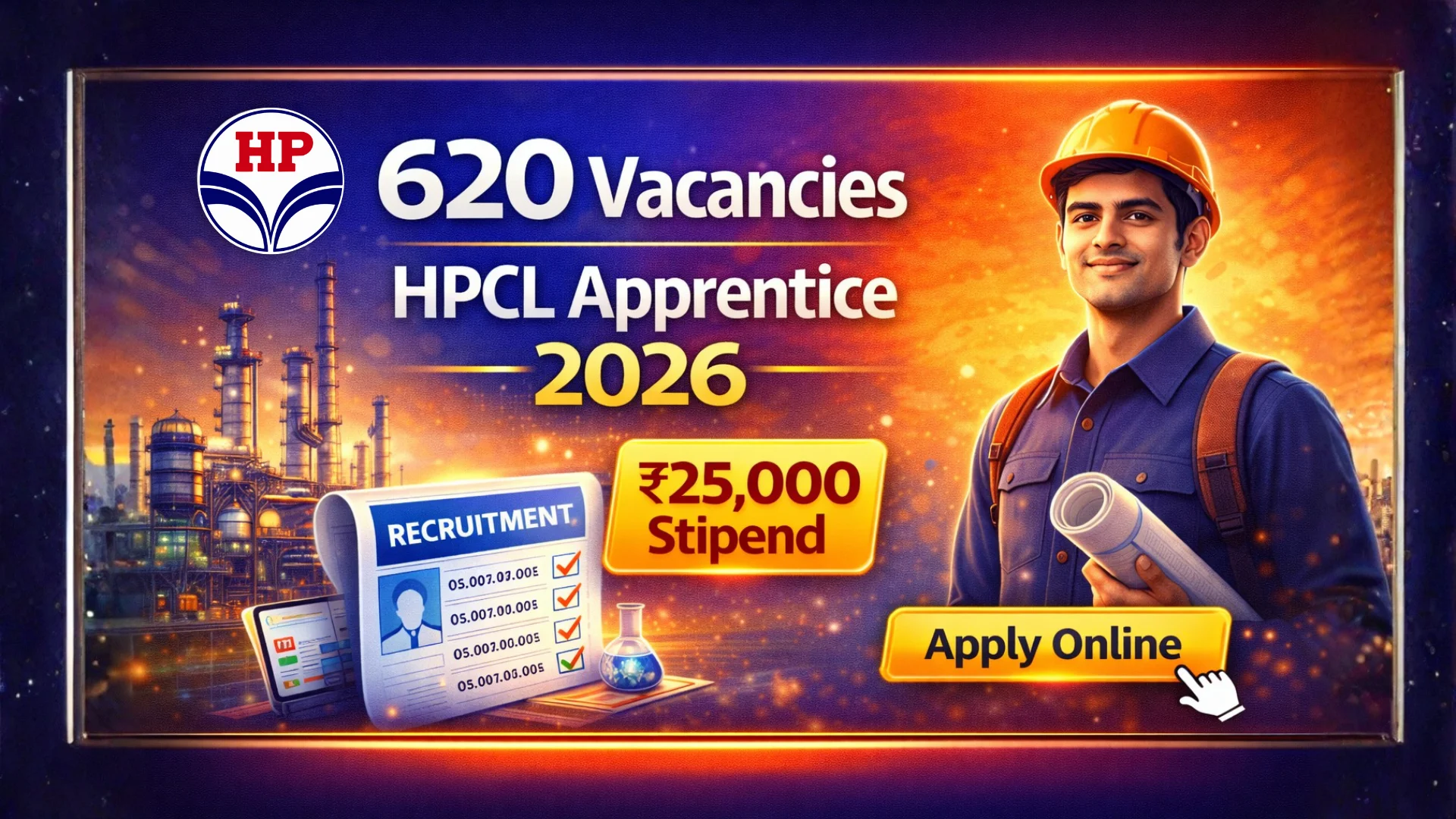 Selected apprentices will receive βΉ25,000/- per month (βΉ20,500 by HPCL + βΉ4,500 via DBT).