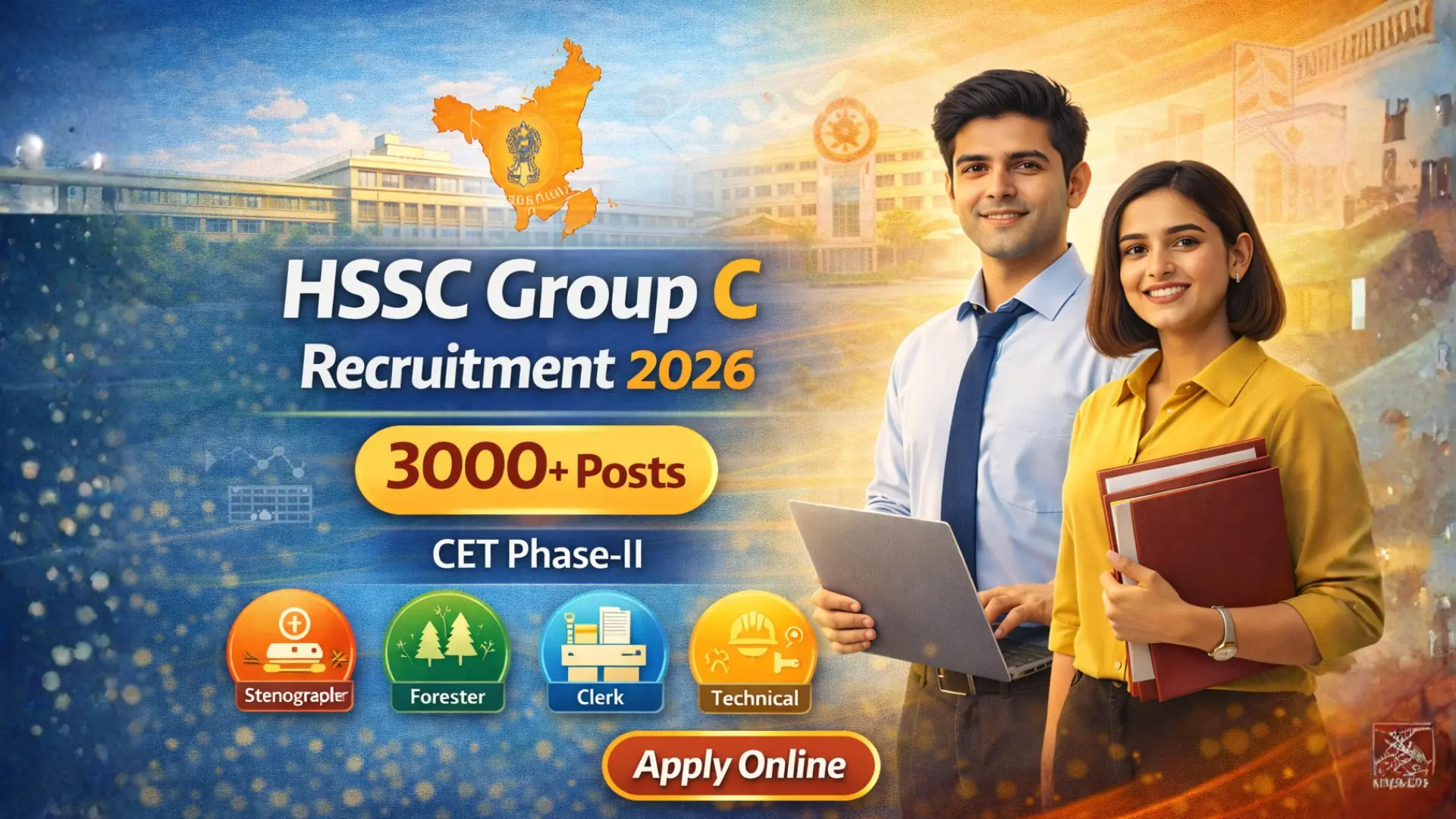 The Haryana Staff Selection Commission (HSSC) has released the official notification for Group C Recruitment 2026 under CET Phase-II. This massive recruitment drive aims to fill 3000+ Group C vacancies including Stenographer, Forester, Mechanic, Draftsman, and other posts across various Haryana Government departments, boards, and corporations.