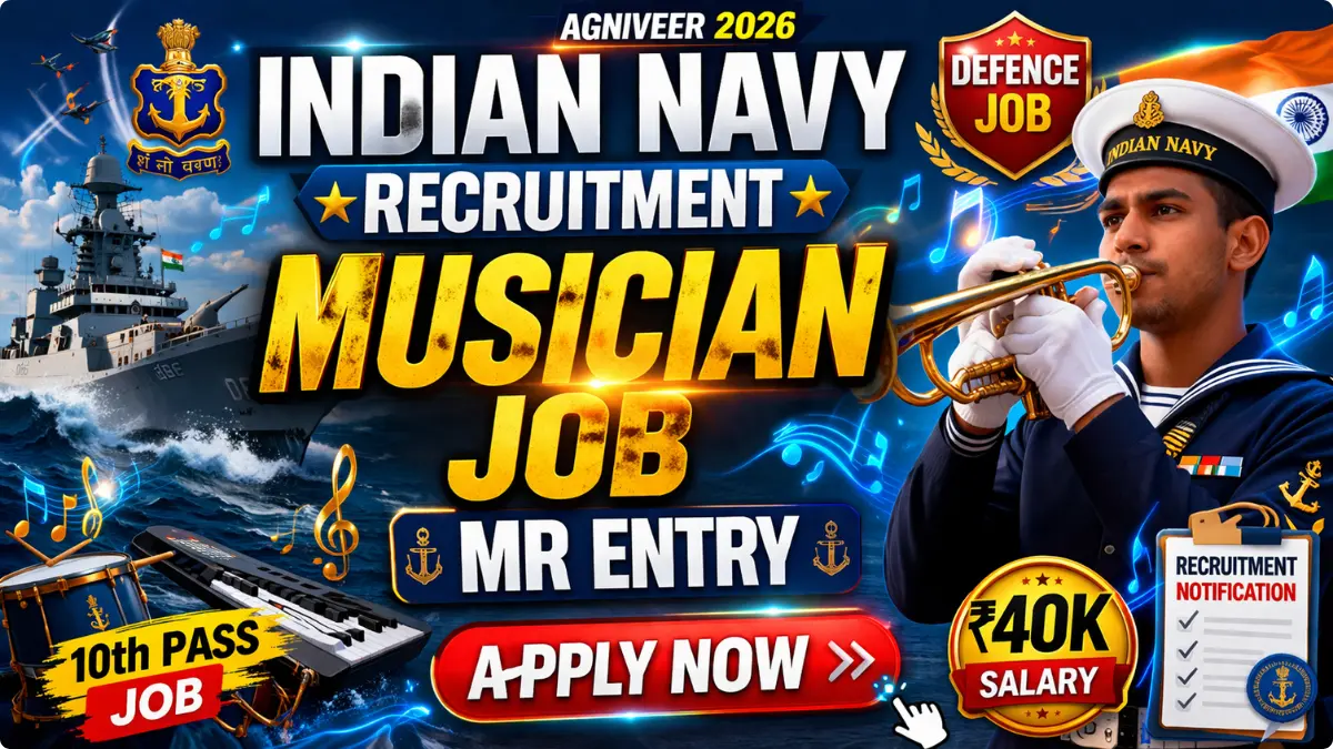 Indian Navy MR Musician Recruitment 2026: Indian Navy has released official notification for Agniveer (MR-Musician) 02/2026 Batch. Online applications are invited from unmarried male and female candidates. Selection will be based primarily on Music Ability Test.
