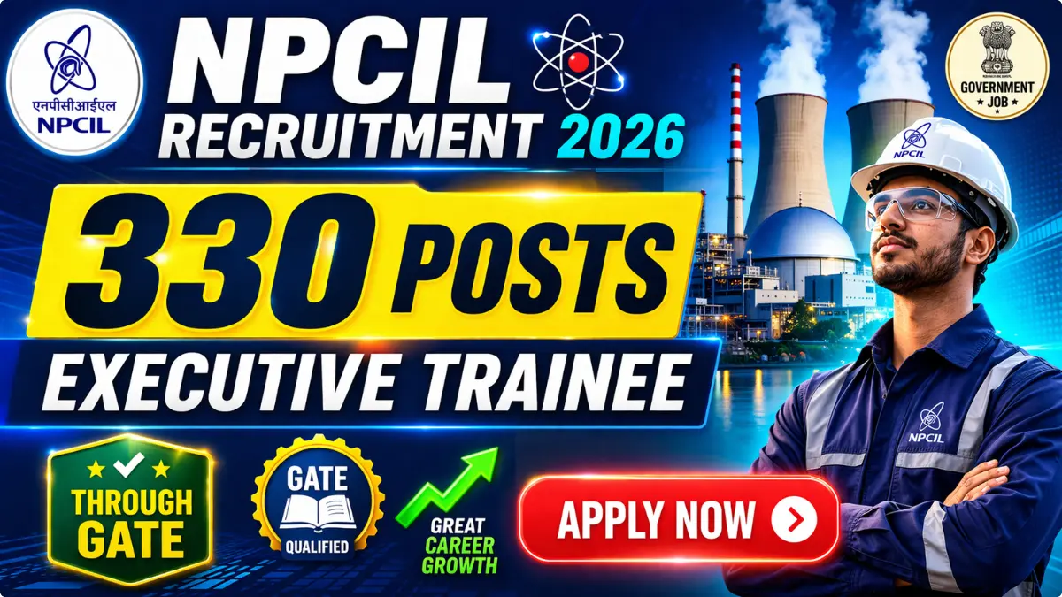 NPCIL Executive Trainee 2026: Nuclear Power Corporation of India Limited (NPCIL) has released the official notification for Executive Trainee (ET) Recruitment 2026 through GATE 2024/2025/2026. A total of 330 vacancies are available across multiple engineering disciplines.