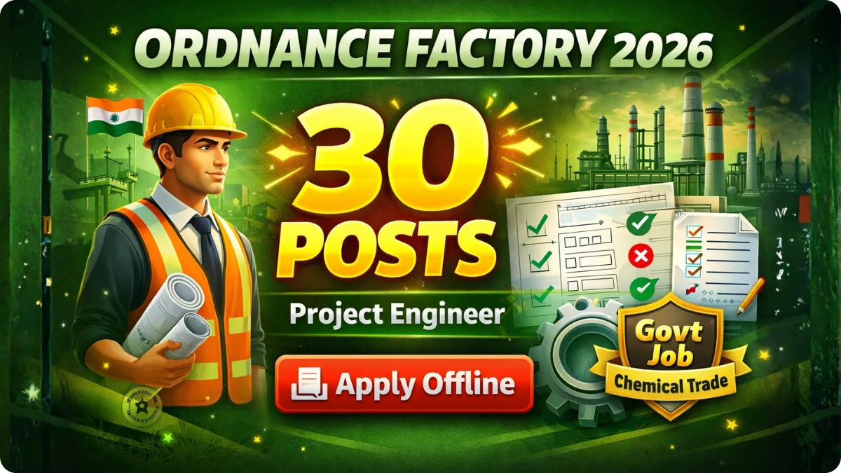 Ordnance Factory Bhandara Recruitment 2026: Ordnance Factory Bhandara (Unit of Munitions India Limited, Ministry of Defence) has released an official notification for engagement of Tenure Based Project Engineer (Chemical Trade) on contract basis. Eligible candidates can apply offline for a total of 30 vacancies.