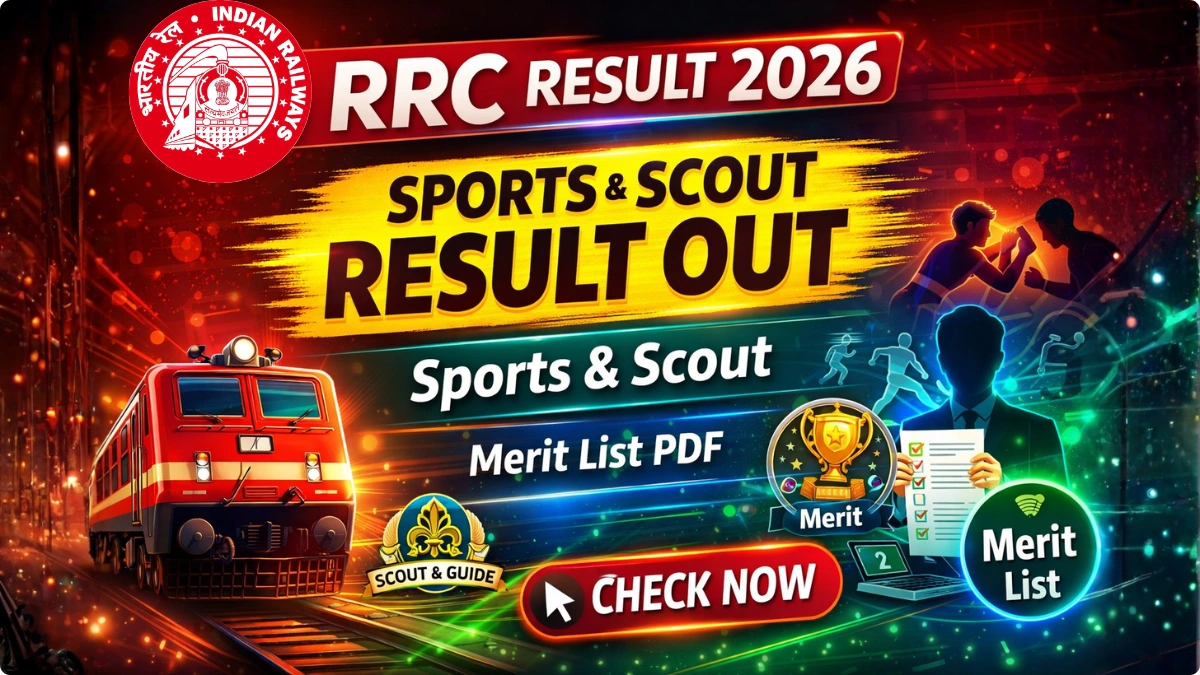 RRC Sports Quota Result 2026: Railway Recruitment Cell (RRC), North Central Railway (NCR), Prayagraj has officially released the Sports Quota & Scout & Guide Quota Result 2026. Candidates who appeared in trials/written test can now check the provisional panel (merit list) released on the official website.