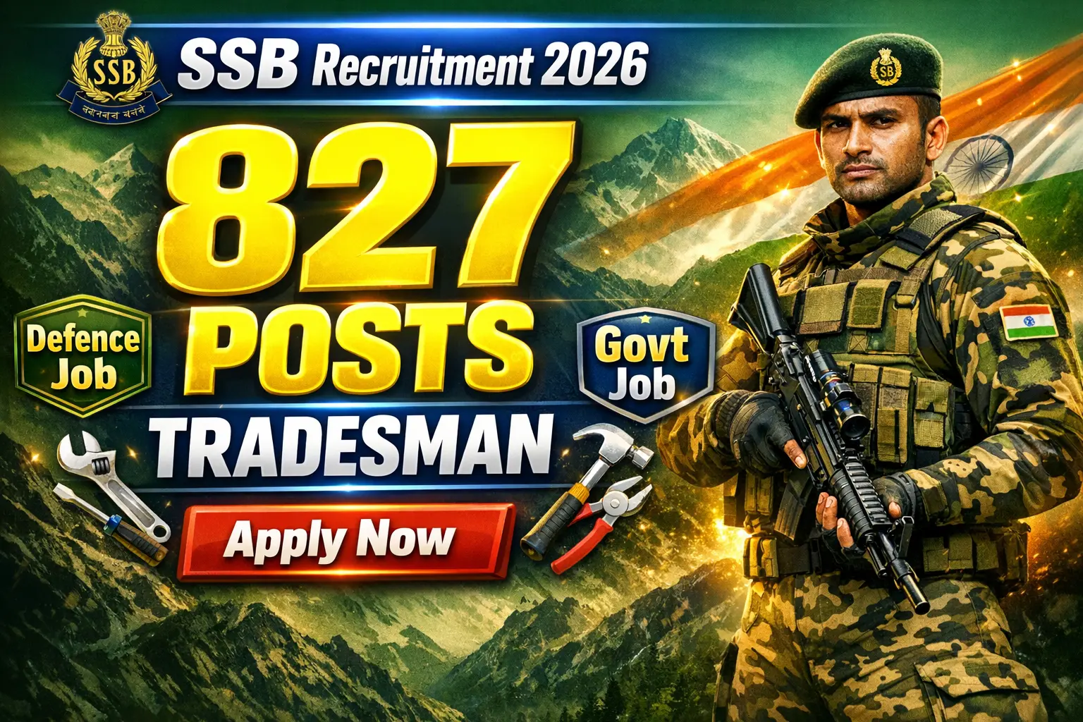 SSB Constable Tradesman Recruitment: Sashastra Seema Bal (SSB), under the Ministry of Home Affairs, has released the official notification for Constable Tradesman Recruitment 2026. A total of 827 vacancies have been announced for multiple trades like Driver, Gardener, Washerman, Barber, Tailor, Cobbler and more.