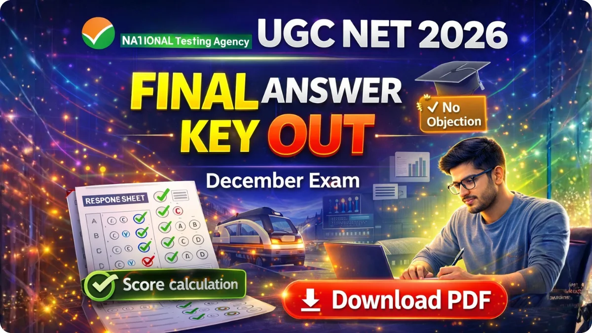 UGC NET Final Answer Key 2026: National Testing Agency (NTA) has officially released the UGC NET December 2025 Final Answer Key on 03 April 2026. Candidates who appeared in the examination conducted between 31 December 2025 to 07 January 2026 can now download the final answer key PDF from the official website.