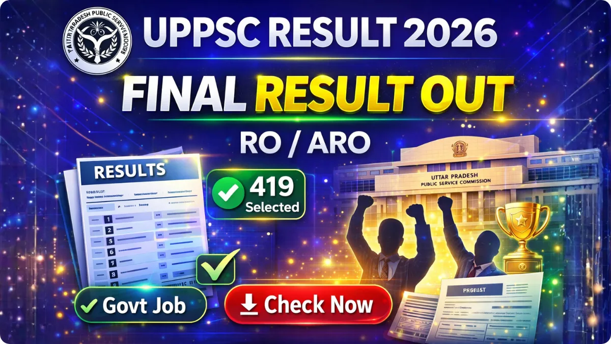 UPPSC RO ARO Final Result 2023: Uttar Pradesh Public Service Commission (UPPSC) has officially released the RO/ARO 2023 Final Result on 05 April 2026. Candidates who appeared in the Main Examination and Skill Test can now check their final selection status from the official website.
