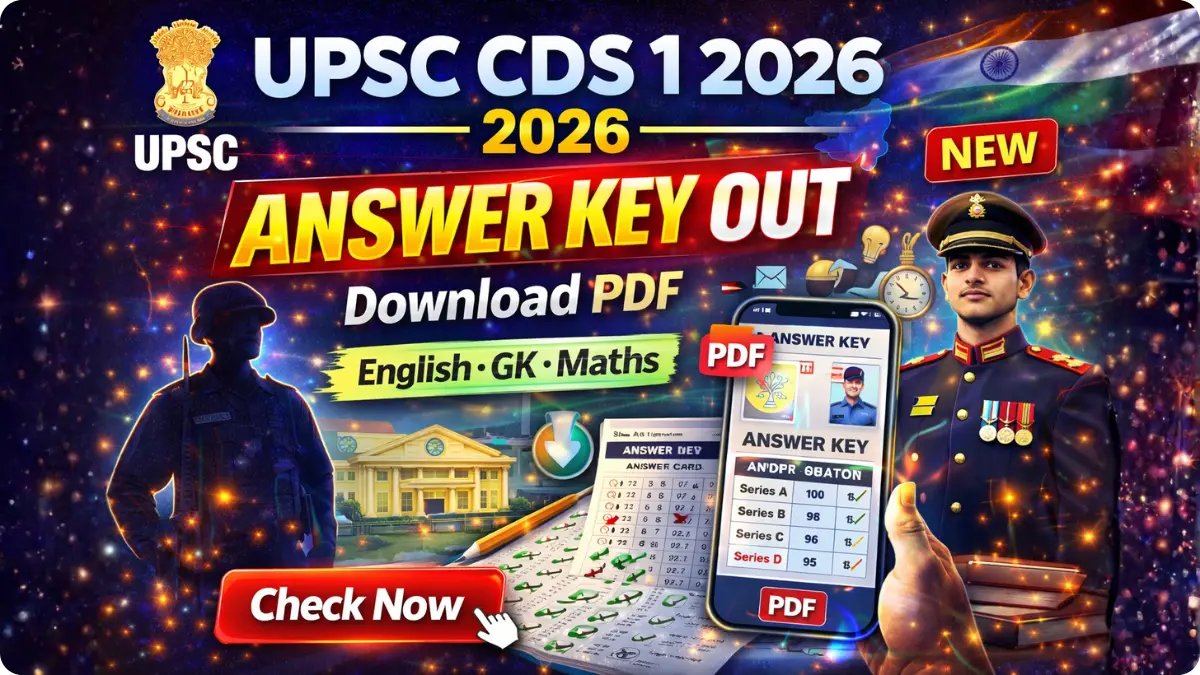 UPSC CDS Answer Key 2026: Union Public Service Commission (UPSC) has released the CDS (1) 2026 Answer Key for the Combined Defence Services Examination. Candidates who appeared in the exam can now download the subject-wise provisional answer key PDF for English, General Knowledge and Elementary Mathematics.